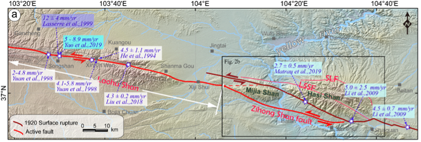 Yao, W., Liu-Zeng, J., Klinger, Y., Wang, Z., Shao, Y., Han, L., et al. (2022). Late Quaternary slip rate of the Zihong Shan branch and its implications for strain partitioning along the Haiyuan fault, northeastern Tibetan Plateau. Journal of Geophysical Research: Solid Earth, 127, e2021JB023162.