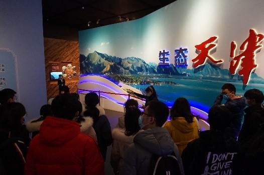 以“保护生态环境,建设美丽天津”为主题的纪念改革开放40周年“生态天津”专题展览是此次学生实践学习的重点。展厅展示面积600平方米,用包括岩矿、动植物标本、地图、沙盘模型等500余件展品全面展现了从十几亿年前蓟县地质剖面遗迹到距今万余载的贝壳堤古海岸,现代森林、湿地、海洋等多种生态系统,再到当前天津市一系列生态保护工作。跟随讲解的介绍,同学们在一件件展品前驻足,当遇到与自己的课程学习相结合的地方大家纷纷讨论分享。
