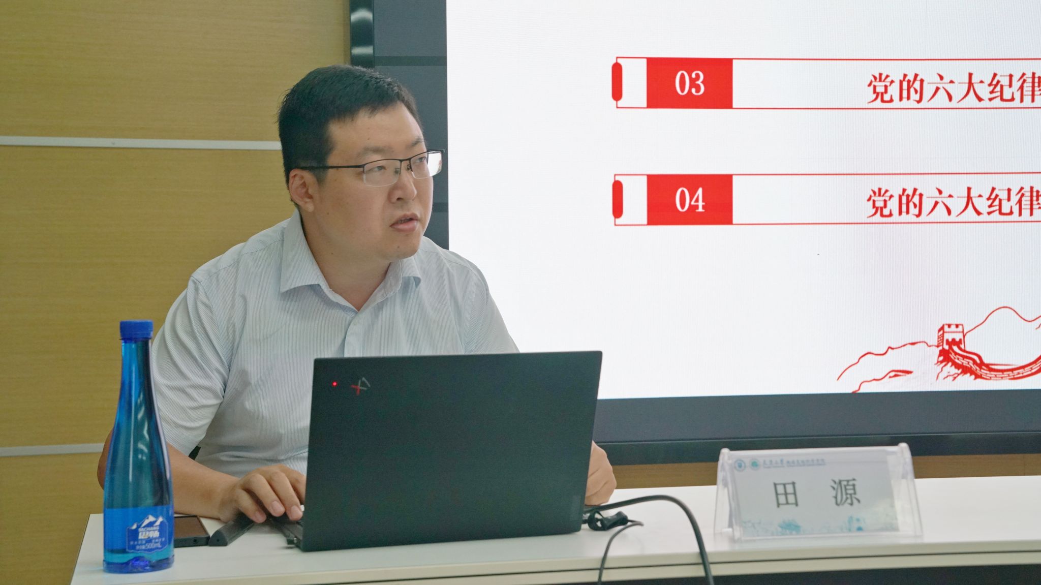 6月7日,地科院党委举办党纪学习教育理论辅导报告会,邀请天津大学党纪学习教育宣讲团成员、法学院田源副教授作题为《党的六大纪律精要及典型案例解析》理论辅导报告。地科院师生党员及积极分子代表参加报告会,党委书记徐延平主持。