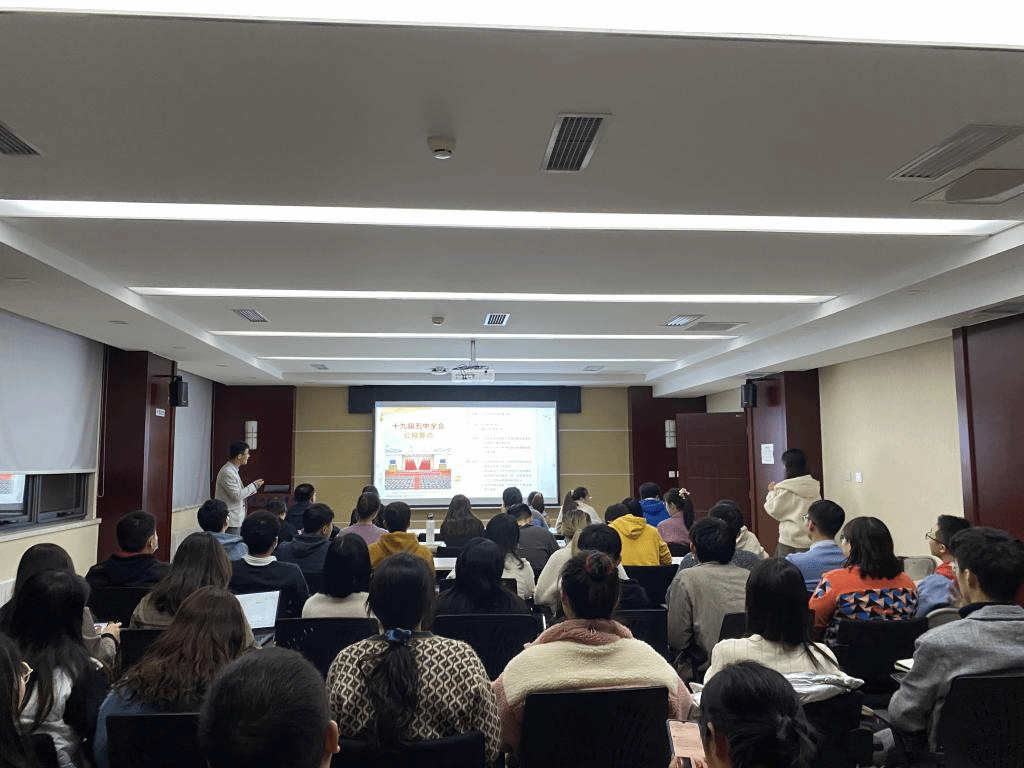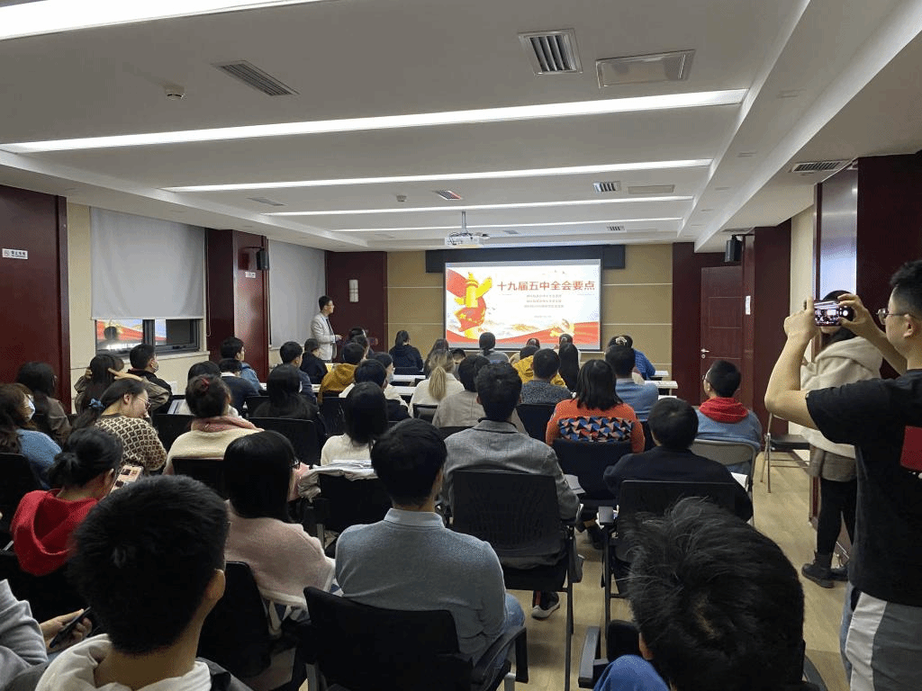 全体党员共同观看了党的十九届五中全会精神中央宣讲团首场报告会节选。博士生党支部书记武冬冬带领大家深入解读了十九届五中全会的有关内容和全会精神,为大家讲解了决胜全面建成小康社会取得的10方面决定性成就、到二零三五年要实现的9方面远景目标、“十四五”时期经济社会发展的6方面主要目标,以及12方面具体举措。