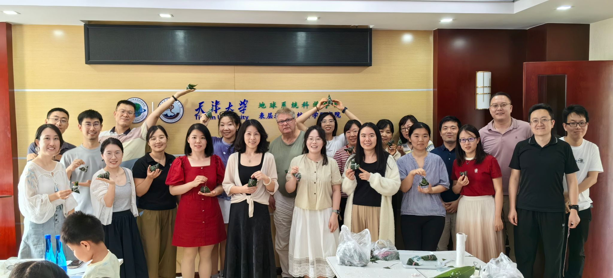 活动伊始,地科院的中外教师在工作人员的指导下加工粽叶、糯米、红枣等材料,动手包粽子。现场气氛热烈,大家互相学习、交流技巧,不一会儿,形状各异的粽子诞生了。大家一边包,一边分享着关于端午节的趣事和习俗,场面温馨而融洽。