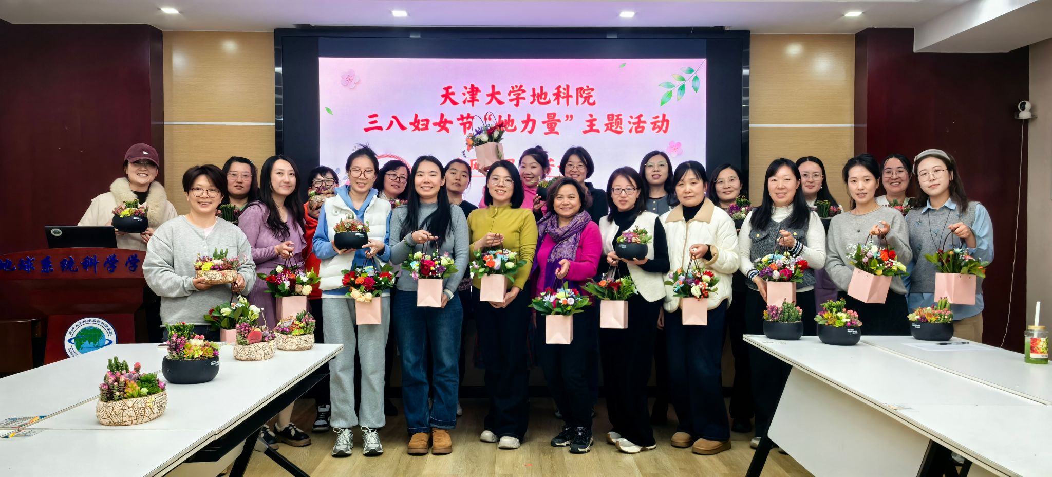 为庆祝第116个“三八”国际劳动妇女节,丰富女教职工的精神文化生活,天津大学地球系统科学学院精心策划并举办了“春风十里 芬芳如你”主题活动,以花木为媒,传递节日祝福,致敬巾帼风采,凝聚奋进力量。