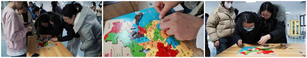 最后,学院组织教师们进行了地图版块拼图比赛,智力与体力的相互交错,营造了紧张又不失轻松愉快的比赛氛围。