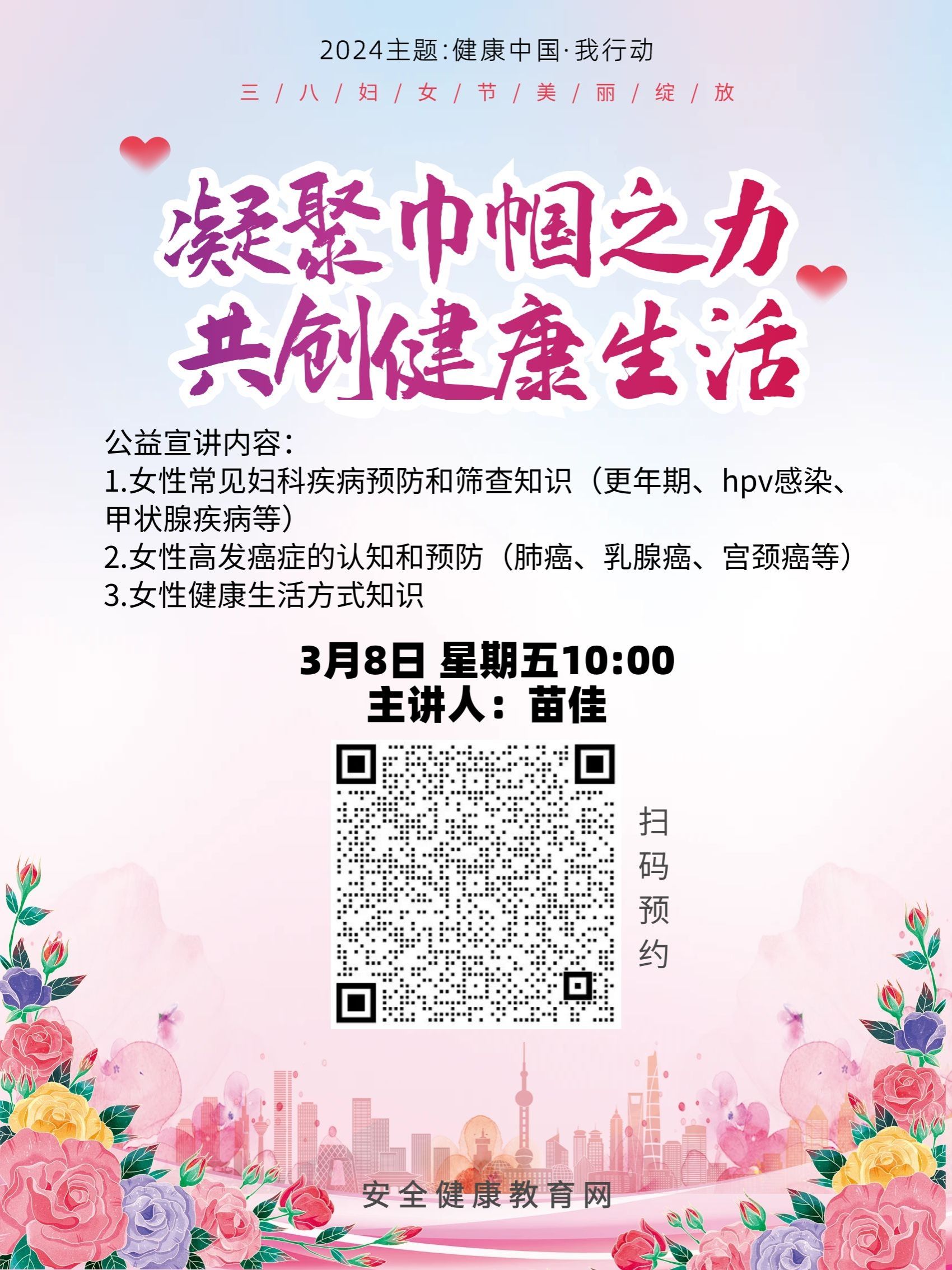 3月8日上午,工会组织“凝聚巾帼之力,共创健康生活”公益宣讲,了解女性常见妇科疾病预防和筛查知识,特别是女性群体高发的肺癌、乳腺癌、宫颈癌等疾病的认知和预防,提醒大家更加关注健康状况,培养健康的生活方式,以积极的身心状态面对各种挑战。