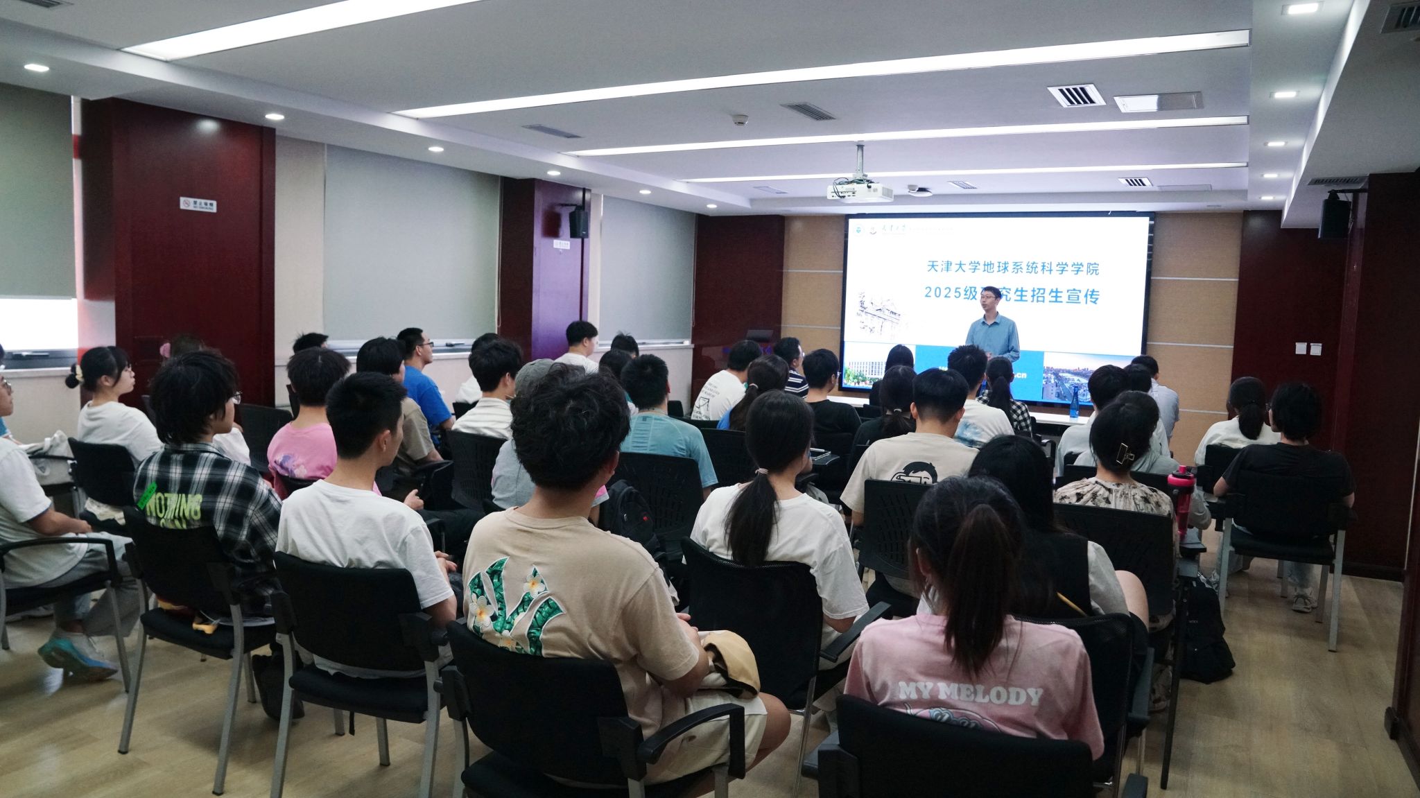 6月5日,我院举办2025年研究生招生宣传暨本校保研推介会。常务副院长李思亮、研究生教育副院长郎赟超、本科生教育副院长李晓东、党委副书记赵剑博、地理科学系主任陈伟、研究生教务员王珊珊及全体三年级本科生参加。赵剑博主持会议。