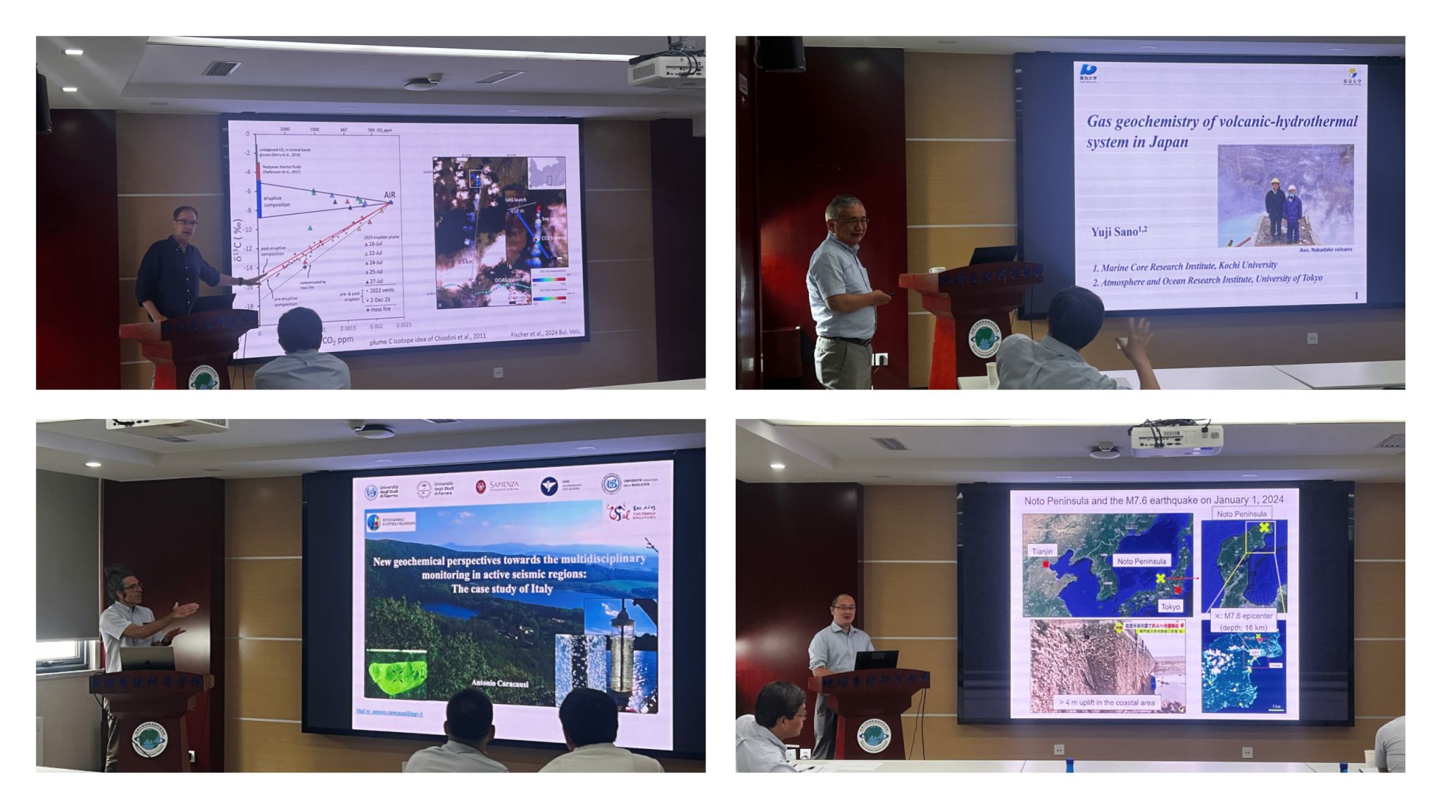7月9日,来访专家在“气体地球化学及其应用学术研讨会”上做专题学术报告,内容涵盖东非大裂谷深部碳释放、日本火山-地热区气体地球化学、意大利地震活跃区流体地球化学监测系统与进展、2024日本能登M7.6级地震流体地球化学观测最新进展等。
