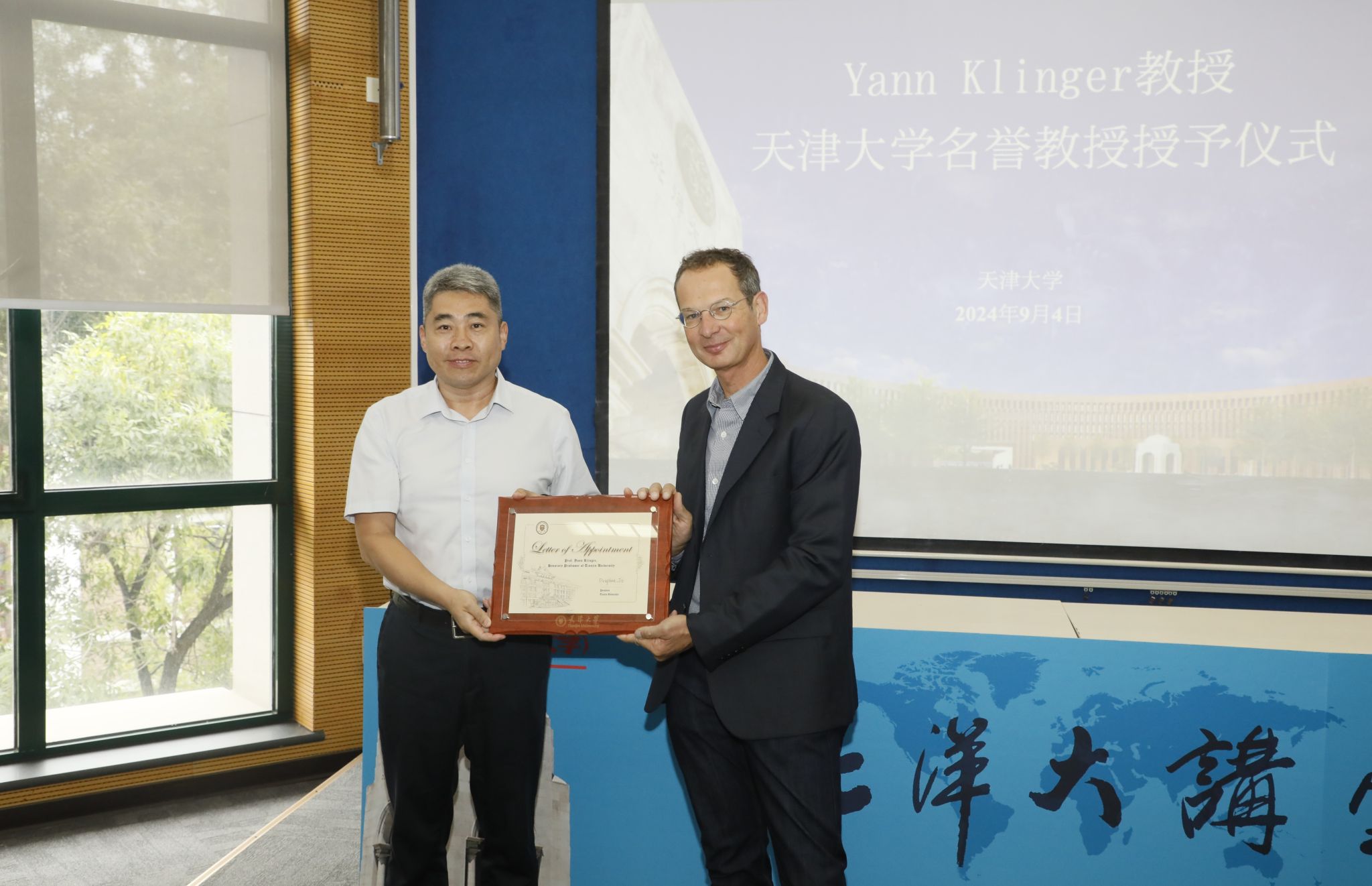 2024年9月4日上午,法国巴黎地球物理学院Yann Klinger教授学术报告会暨天津大学名誉教授授予仪式在卫津路校区会议楼第八会议室举行。