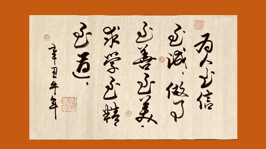 最后,刘院士用亲笔手书向全体新生寄托殷殷期望:“为人至信至诚,做事至善至美,求学至精至道”。