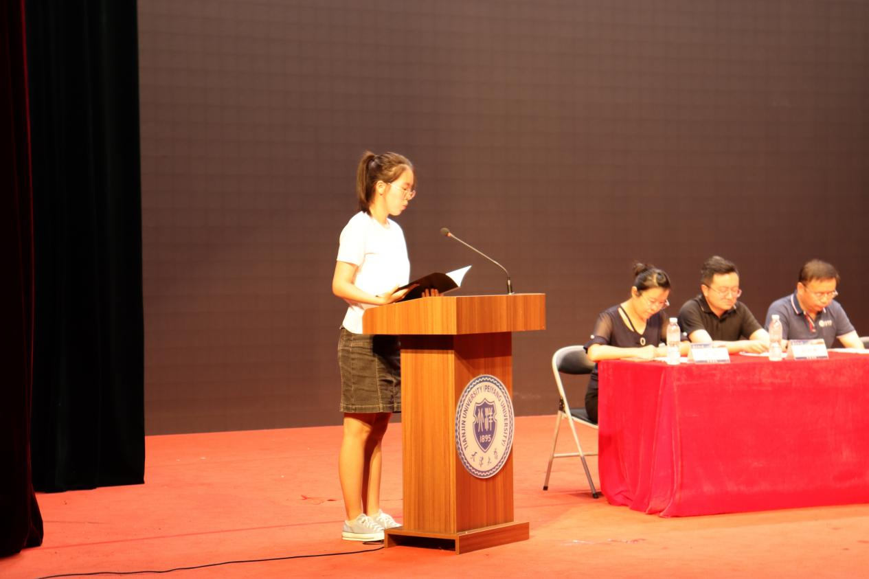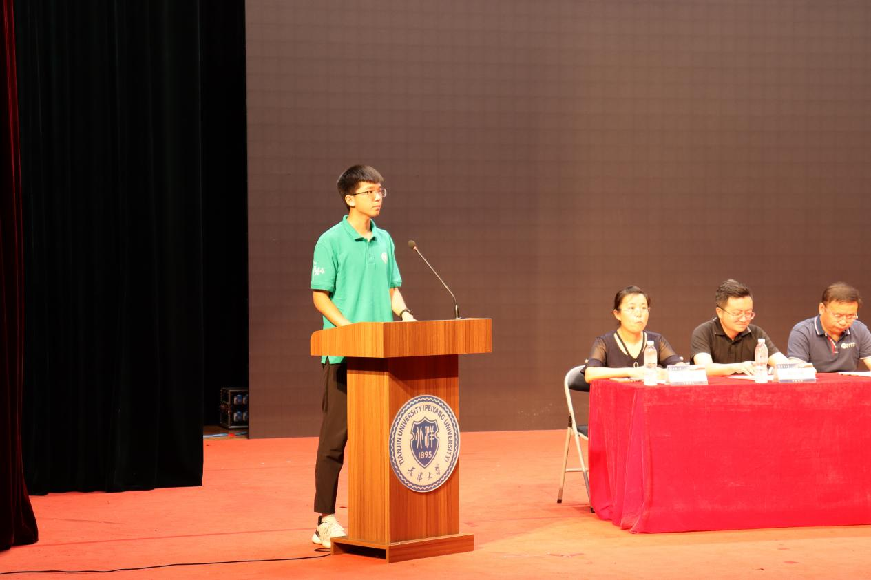 地球系统科学学院2021级地理科学专业本科生李安吉作为在校生代表发言。她首先对新生们的到来表示欢迎,接着分享了自己在学习、科研、实践、学生工作等方面的丰富经历与宝贵经验,并鼓励学弟学妹们不断奋斗,不断拼搏,在天津大学书写最绚烂的青春篇章!