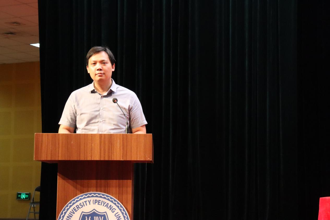 海洋学院海洋技术系主任张安民老师作为师友导师代表致辞。他首先对新生们的到来表示欢迎,并表示无论中学时期大家处于什么位置,如今大家都站到了同一起跑线上,大学生活不是享乐,仍旧需要努力奋斗,在起步时期不可懈怠。最后他寄语全体新生,希望大家能在大学四年间不忘初心、不断探索、不断思考,既要苦干又要巧干,在实现个人价值的同时,完成学校、社会、国家赋予当代青年的责任与使命。