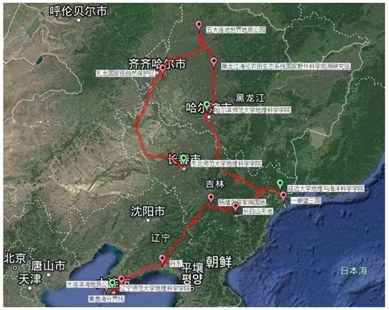 本次实习以“关东山河远阔,地理大道无疆”为主题,历时17天,从东北师范大学启程,途经吉林、黑龙江、辽宁三省10余座城市,在辽宁师范大学结束,行程3500公里,实习线路的设计理念为“白山黑土黄海绿江,穿时跨域穷理寻章”,使参与师生亲身感受东北山川、人文、社会,从地理的视角更加了解祖国的东北,实现“从读万卷书到行万里路”的跨越。