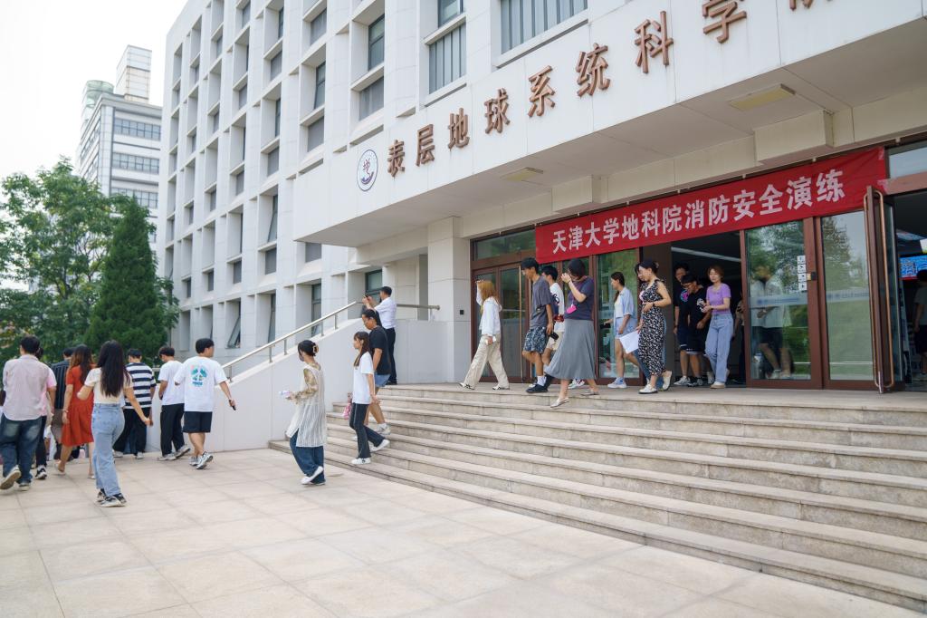 课后在第16教学楼开展消防安全演练。随着警报声响起,院内全体师生按照预定撤离方案从大楼两侧及中间紧急出口离开大楼,在工作人员引导下前往北洋广场指定安全位置避险。整个紧急疏散演练过程快速、有序、高效。