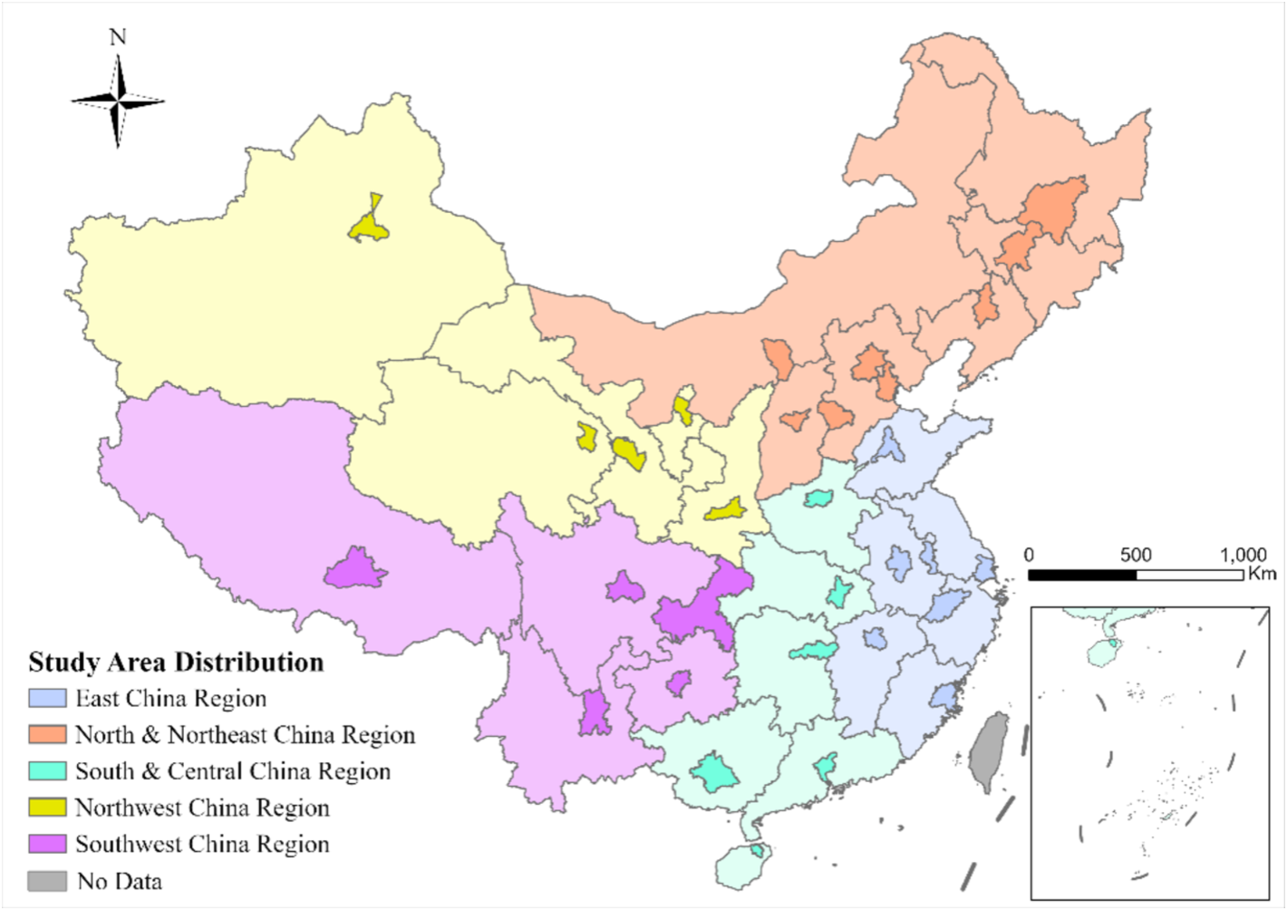 城市不透水面扩张研究显示,在短短40年里,省会城市总不透水面面积从11280平方公里扩大到40429平方公里。城市扩张普遍在2000-2005年达到顶峰,东部城市的扩张速度和密度明显领先于西部城市。尽管大部分城市显示出相似的时间变化趋势,但基于地形、交通和政策因素,各地扩张呈现出轴状、圆状、椭圆状、扇状扩张四种不同的空间特征。