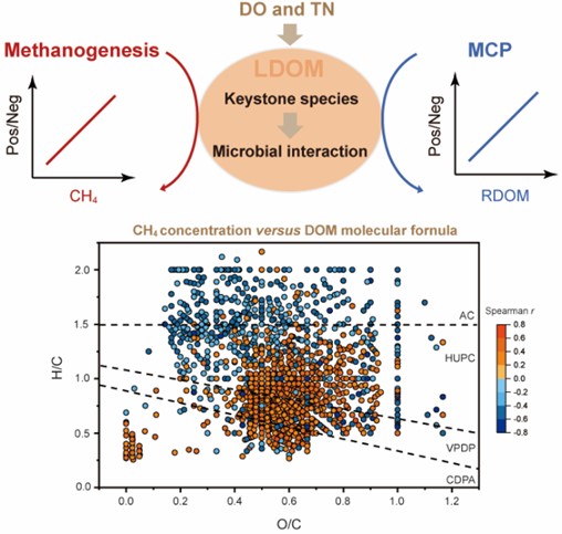 内陆水体是温室气体甲烷(CH4)的重要来源,甲烷产生受到水体溶解有机质(DOM)、氧化还原条件和微生物群落组成等多种因素的影响,具有明显的时空异质性。惰性溶解有机质(RDOM)能够抵抗微生物的快速降解,从而在环境中滞留长达数百至数千年,对评估水生生态系统的自然固碳潜力有重要意义。作为内陆水体碳循环的重要组成部分,甲烷和RDOM的产生都依赖于微生物群落对有机碳的连续处理过程,但目前尚不清楚这两个过程之间的联系以及潜在的微生物调控机制。