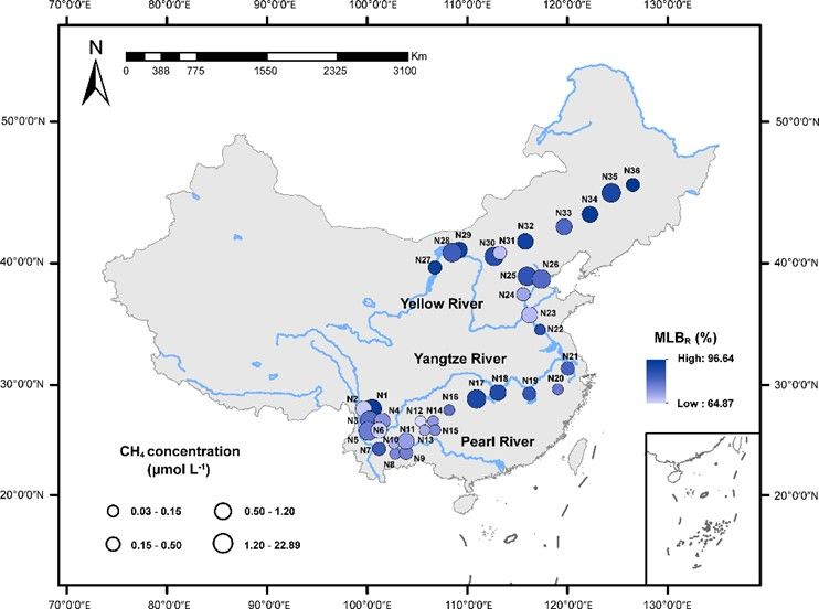 天津大学地科院王宝利教授课题组通过对我国内陆水体进行大环境梯度调查(图1),利用色谱、光谱、质谱和高通量测序等手段,测定了水体甲烷浓度、DOM化学组成、微生物群落组成、碳循环功能基因和相关环境参数,初步探讨了内陆水体碳周转的微生物驱动机制,强调了关键微生物类群的重要作用,为实验室开展相关的控制实验提供了有用参考。