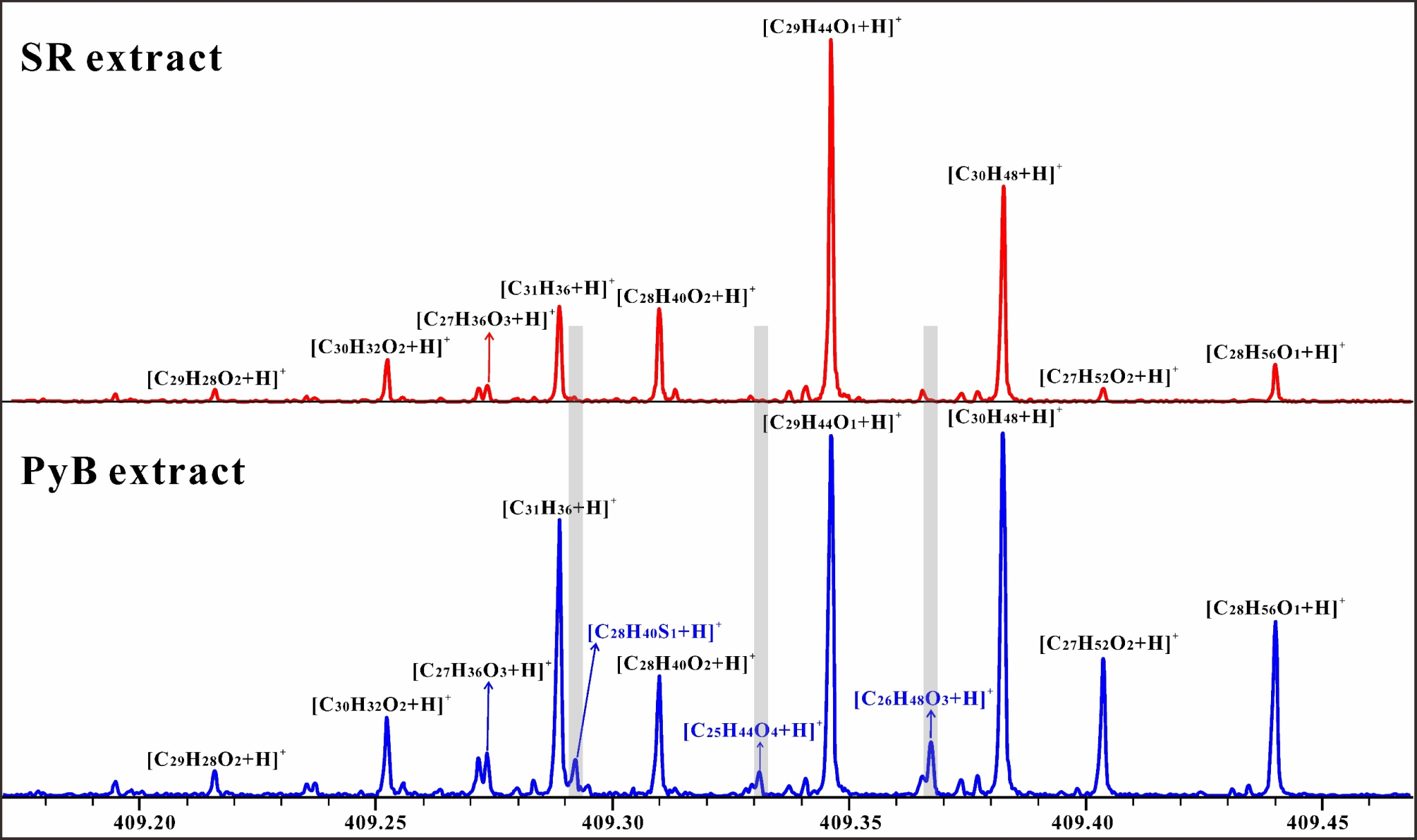 图1 烃源岩与固体沥青中极性化合物分子质谱图