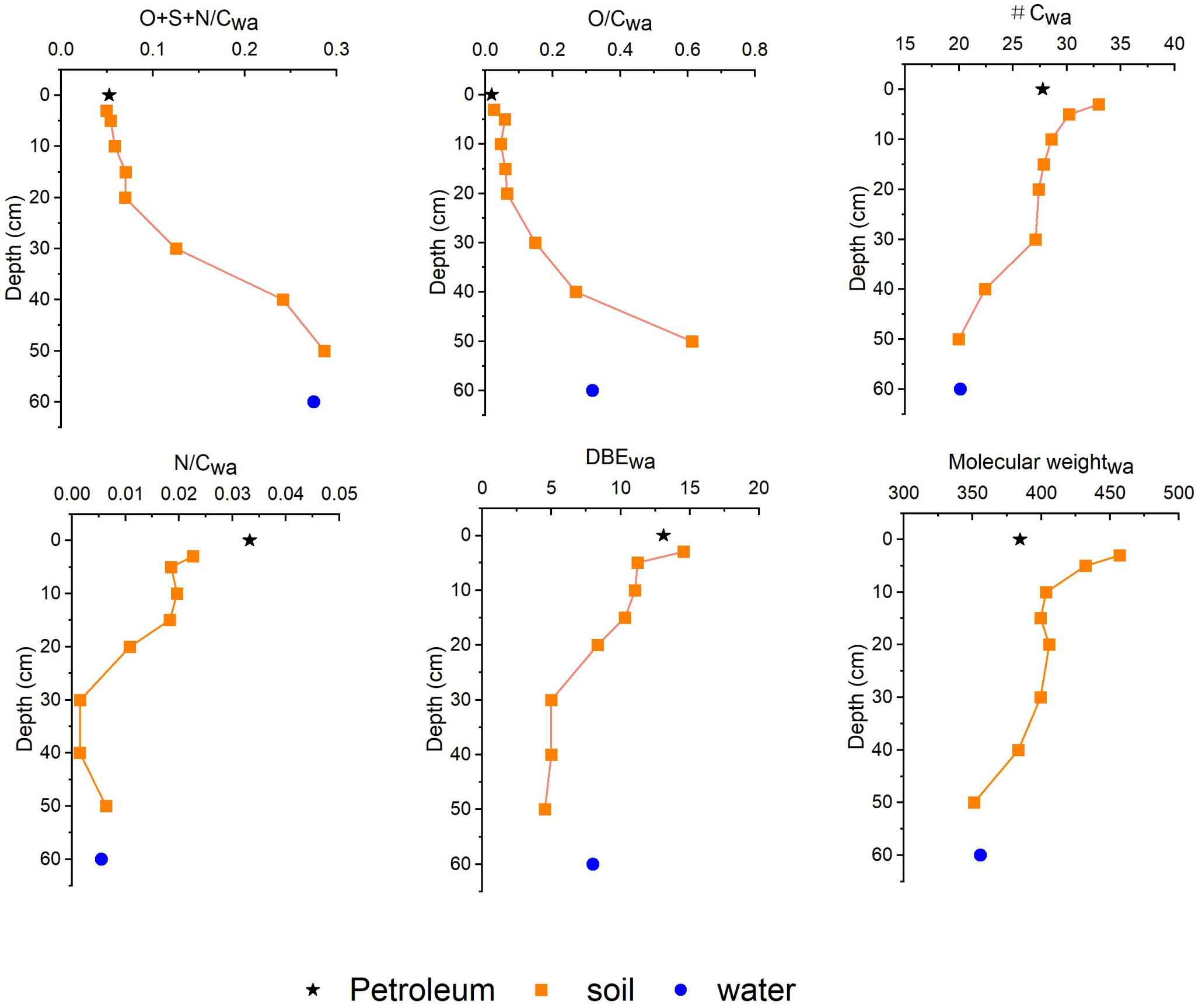 图2 不同深度石油污染土壤中极性化合物指标分布