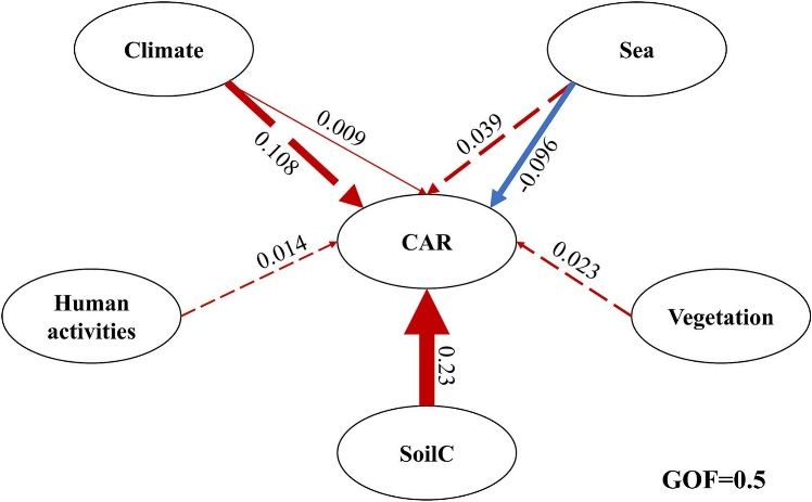研究通过构建全球1277个样点的CAR数据库,系统评估了气候、土壤、植被、海洋及人为因素对CAR的协同影响。结果表明,全球滨海湿地CAR具有高度异质性,潮汐沼泽显著高于红树林。土壤、气候是影响CAR的主要控制因素,人类活动通过改变植被和土壤特性对CAR产生正/负向影响。该研究明确了红树林和盐沼生态系统在碳积累机制上的显著差异,为不同生态系统碳汇管理提供了更具针对性的科学依据。