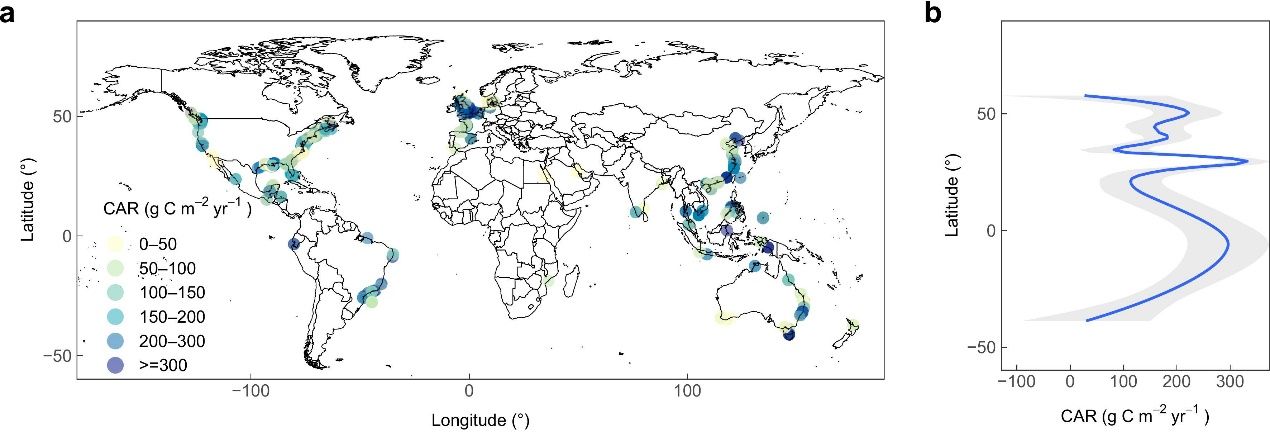 文章信息:Shao-Jun Yan, Qian Hao, Zhifeng Yan, Ren-Min Yang* (2025). Global patterns and driving factors of the carbon accumulation rate in coastal wetlands. Earth-Science Reviews, 105199. https://doi.org/10.1016/j.earscirev.2025.105199