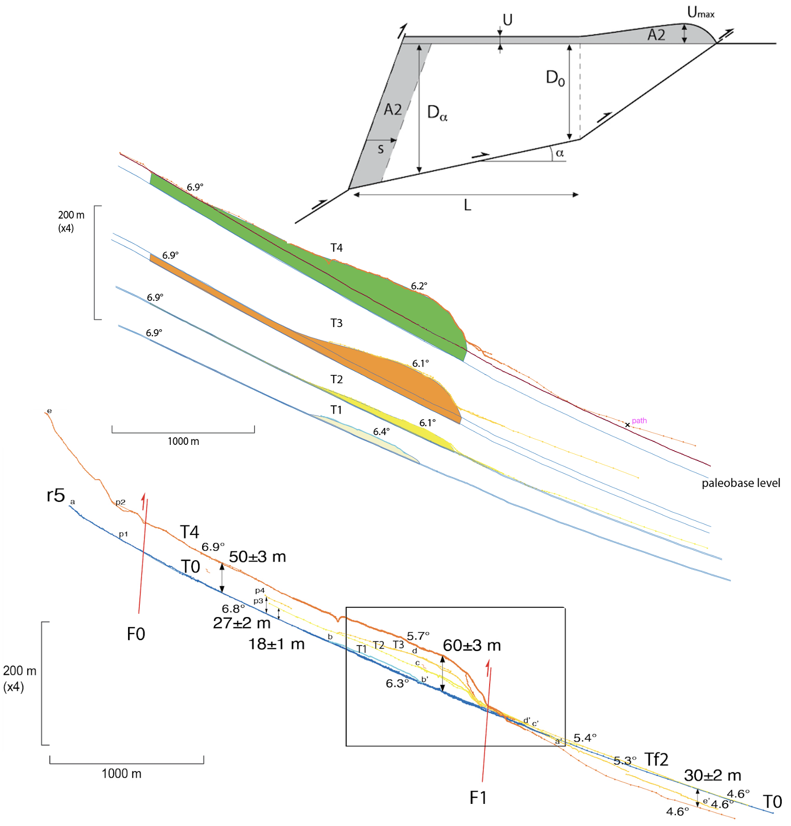党河南山北缘逆冲断裂西段在地貌上断层迹线十分明显,主要表现为由冲洪积扇和阶地褶皱抬升形成的两条断层陡坎,呈左阶展布。对于南支断裂,本研究采用差分GPS采集了多条长大于5km的地形剖面,约束了拔河高7-60m的4级阶地面变形特征,构建逆冲-褶皱缩短模型,限定了4级阶地的缩短量。在北支断裂上,利用无人机载LiDAR,获得高分辨率变形地貌特征,并测得不同阶地抬升量在1.5-3.6 m之间,并基于古地震探槽获得的断裂剖面,约束了最高一级阶地的缩短量为4.5 m。同时,本研究利用宇宙成因核素和光释光测年技术,获得了各地貌面的年龄,限定党河南山北缘断裂带的抬升速率和缩短速率分别为1.4±0.4 mm/yr和0.8±0.2mm/yr,与晚中新世以来党河南山的平均缩短速率结果一致。此外,基于党河南山北缘断裂和阿尔金断裂几何结构特征,以及以往区域内古地震序列的研究成果,分析认为在本研究区内有可能发生复杂的走滑—逆冲运动的级联破裂,其震级在Mw7以上。