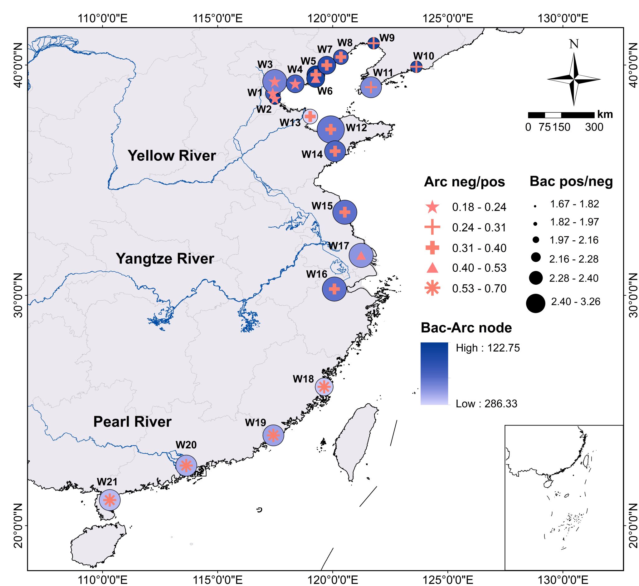 微生物(又称“unseen majority”)是生物圈中的重要生命形式。它们通过同化和异化过程驱动元素循环,使得地球表层上的元素得以重新分配和利用。因此,微生物被认为是驱动元素生物地球化学循环的引擎和塑造地球宜居性的重要动力。微生物通常通过建立复杂的互作关系(如竞争与合作)进行共存。除微生物直接介导碳循环过程之外,其种内和种间的互作模式及强度会改变群落结构组成并影响碳循环。为深入理解滨海湿地中这些微小生命形式及其复杂互作关系对其碳转化的影响,天津大学地球系统科学学院王宝利课题组对我国不同类型的沿海湿地进行了野外调查(图1),基于高通量测序以及基因芯片技术了解微生物互作模式、互作强度以及碳代谢潜能,同时结合碳稳定同位素(δ13CPOC, δ13CDOC, δ13CDIC)技术,综合运用多种数理统计方法,揭示了微生物互作在滨海湿地有机质降解过程中扮演的角色(图2)。