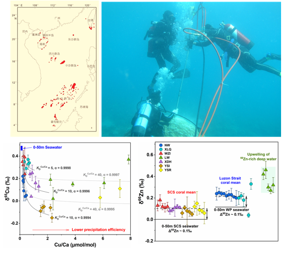 近日,我院同位素前沿科学研究中心在金属同位素研究方面取得新进展,相关研究结果以“Copper and Zinc isotope signatures in scleratinian corals: implications for Cu and Zn cycling in modern and ancient ocean”为题在国际知名期刊Geochimica et Cosmochimica Acta上发表。