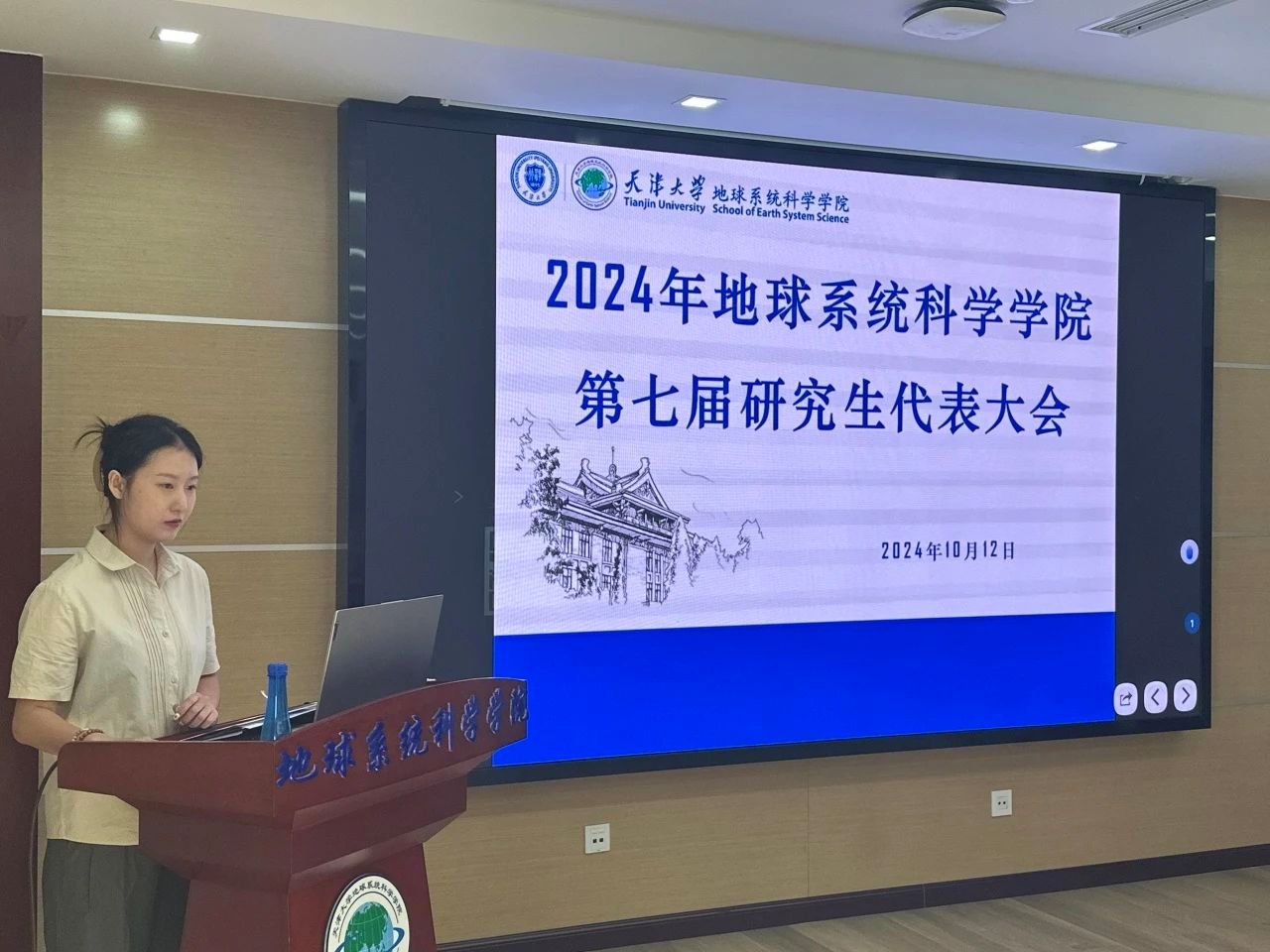 2024年10月12日上午10:00,天津大学地球系统科学学院第七届研究生代表大会暨研究生会换届大会在天津大学卫津路校区16教学楼221报告厅召开。各班级研究生代表大会代表、第六届研会工作人员、第七届研会主席团候选人参加本次会议,研究生会指导教师唐阳出席本次会议。大会由23级硕士研究生程馨瑶主持。