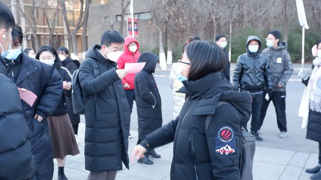 在防疫工作人员的辛勤工作和全校师生的配合下,核酸检测有条不紊地进行。室外气温很低,学校以院系为单位安排时间进行检测,大大缩短了同学们的等待时间。冬日的寒风凛冽,吹不凉防疫工作人员心头的热血。抗疫之行还很长,我们每个人都在路上。