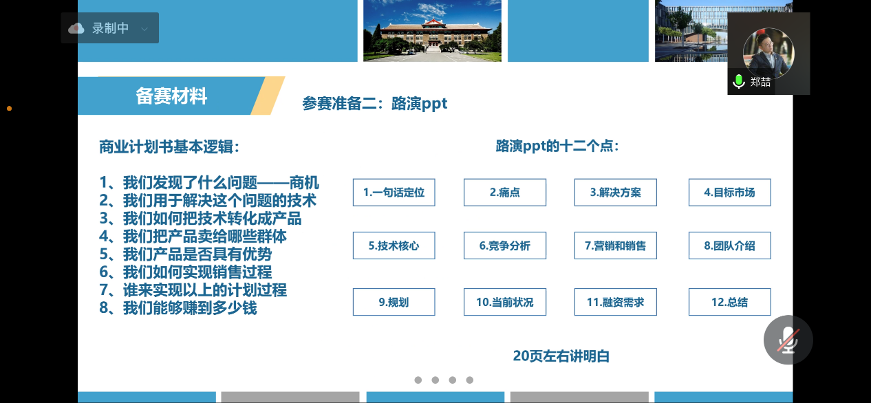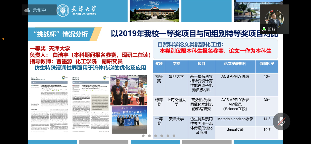 郑喆老师重点介绍了“挑战杯”全国大学生课外学术科技作品竞赛、“挑战杯”全国大学生创业计划竞赛、中国国际“互联网+”大学生创新创业大赛这三项国家级重点赛事,分析了近几年获奖项目选题方向,为学生开拓创新思路,最后以我校获奖项目的备赛历程为例,为我院师生分享了备赛经验,并鼓励学生提升专业素质,追逐创新梦想。