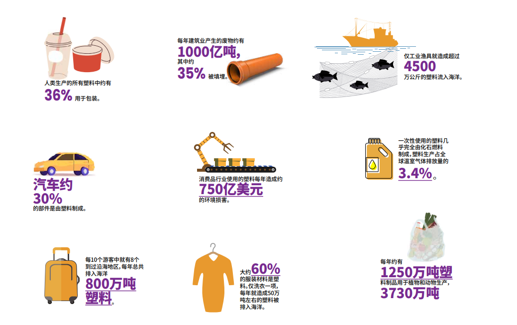 目前,我们每年产生约4亿吨塑料垃圾,在全球已经产生的70亿吨塑料垃圾中,只有不到10%的塑料垃圾被回收再利用。其余塑料垃圾以地膜、大棚、烟头和包装瓶等各种形式进入到土壤、大气、河流和海洋环境,造成的主要危害有: