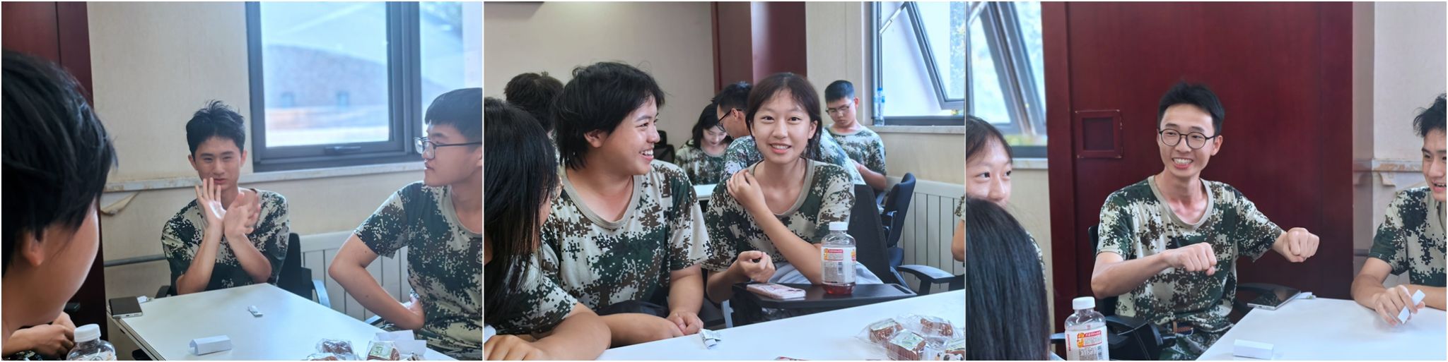 一场别开生面的破冰活动拉开见面会的序幕。新生们依据抽签分组,在小组内轮流进行自我介绍,并各自展示一个标志性动作。生动有趣的表达和诙谐幽默的动作,让现场充满欢声笑语,师生间的距离在不经意间悄然拉近。
