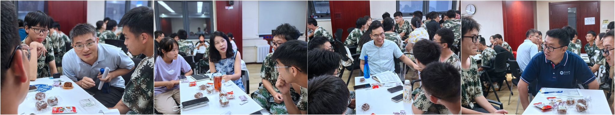 夜幕降临,见面会渐入尾声,师生间的自由交流却越发热烈。大家纷纷建立群聊、分享趣事,老师们认真倾听新生的迷茫与问题,耐心解答,指点迷津。