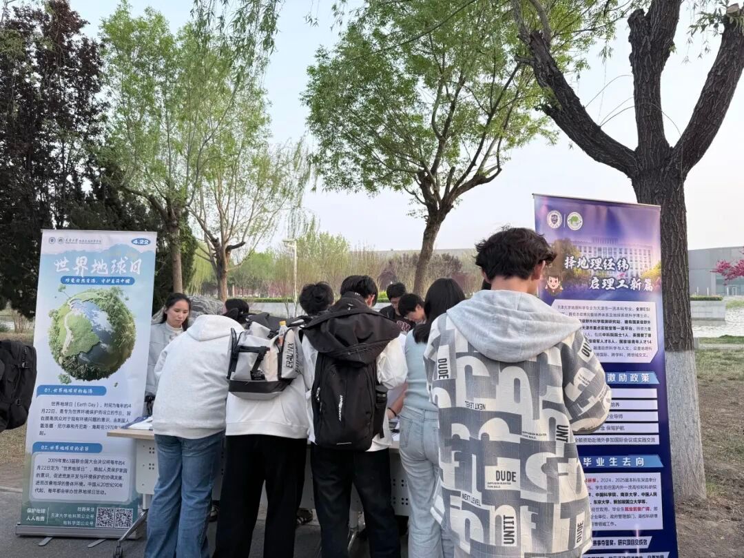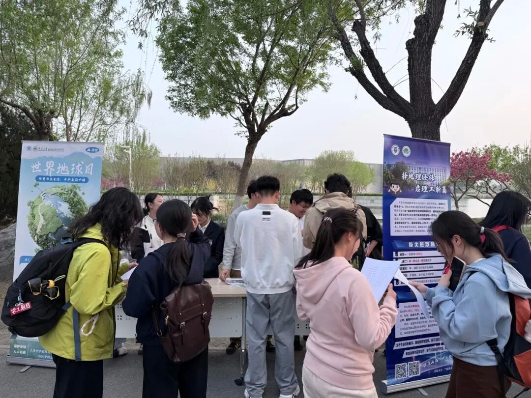 2026年4月22日是第57个"世界地球日"。值此之际,我们在关注地质变迁的同时,更倡导人与自然和谐共生。为响应“珍爱地球,人与自然和谐共生”的号召,地科院学生会在双校区分别开展主题科普宣传活动,通过知识竞答、趣味小游戏等,让每一位参与者在沉浸式体验中解锁地学奥秘,感受地球魅力,将环保理念根植于心、践之于行。