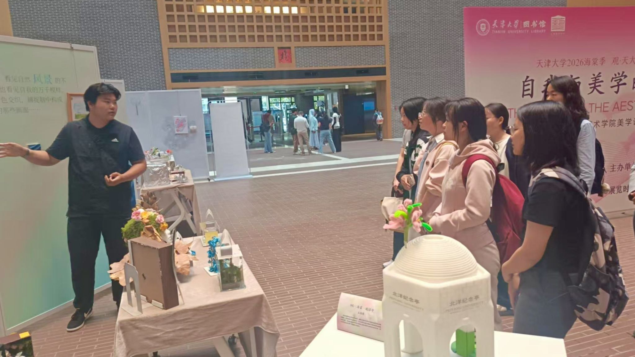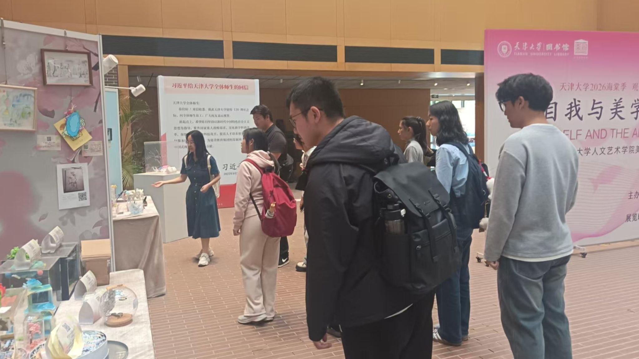 4月18日下午,地球系统科学学院与人文艺术学院在北洋园校区郑东图书馆一层展厅联合举办“自我与美学的凝视”展览参观活动。来自两个学院的2025级本科生到场参与。同学们共同走进展览现场,在人文艺术学院两位同学的引导、讲解下,完成了一次跨越学科的心灵对话。