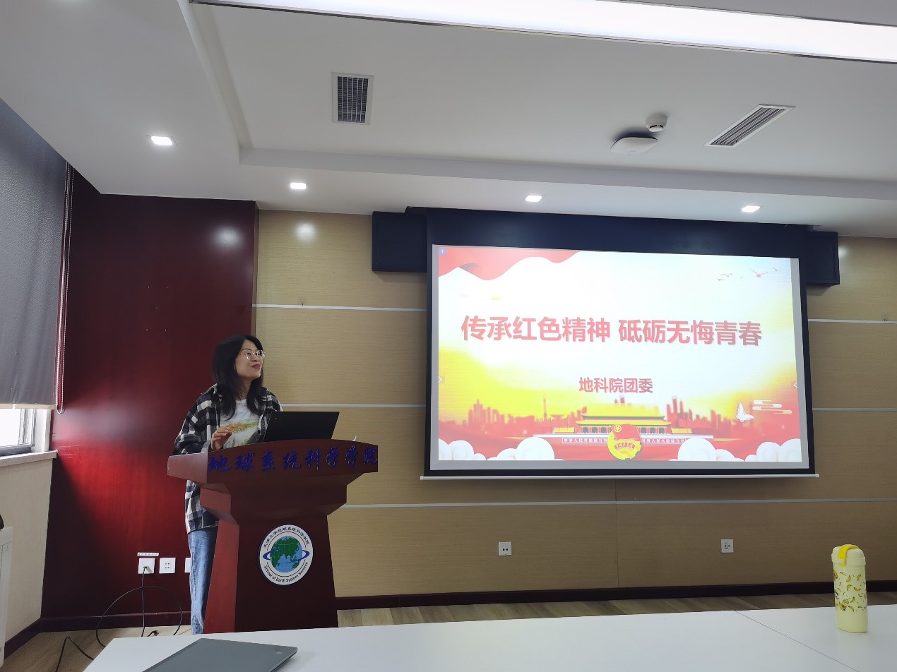 2021年6月10日,地科院团委书记任露洁老师为2020级本科生团支部带来“传承红色精神 砥砺无悔青春”主题团课。