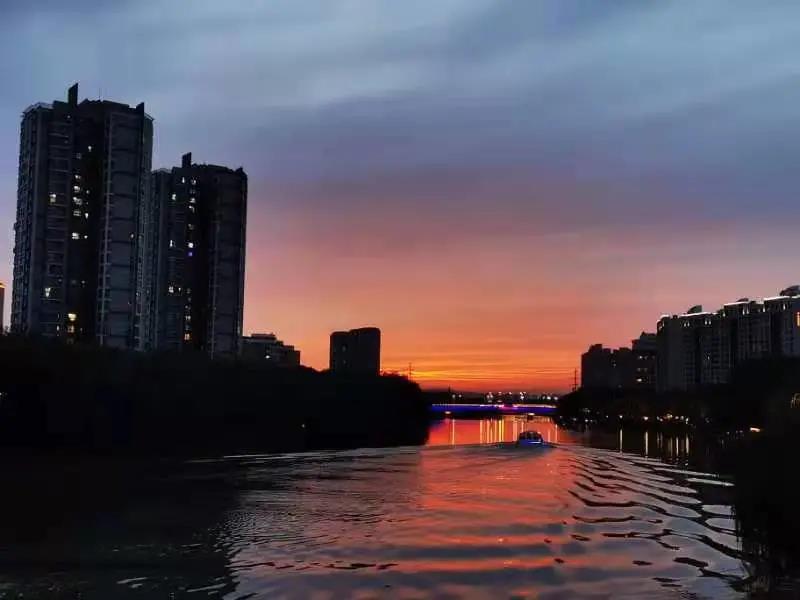 夕阳下的秦淮河波光粼粼,两岸的城市鳞次栉比,六朝古都的景色磅礴大气。