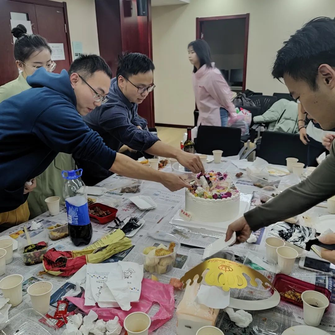 我们分别购买食物,一起分享,品味其他人带来的食物,感受分享的快乐。大家一起玩桌游,放下疲惫,打开心灵;一起为毕业生准备蛋糕,祝愿他们的未来光芒万丈。本学期开学以来,因为课业紧张和科研压力,少有机会相聚,而这一次两个课题组成员一起组织的团建活动,增强了思想碰撞,也增进了大家的情谊。
