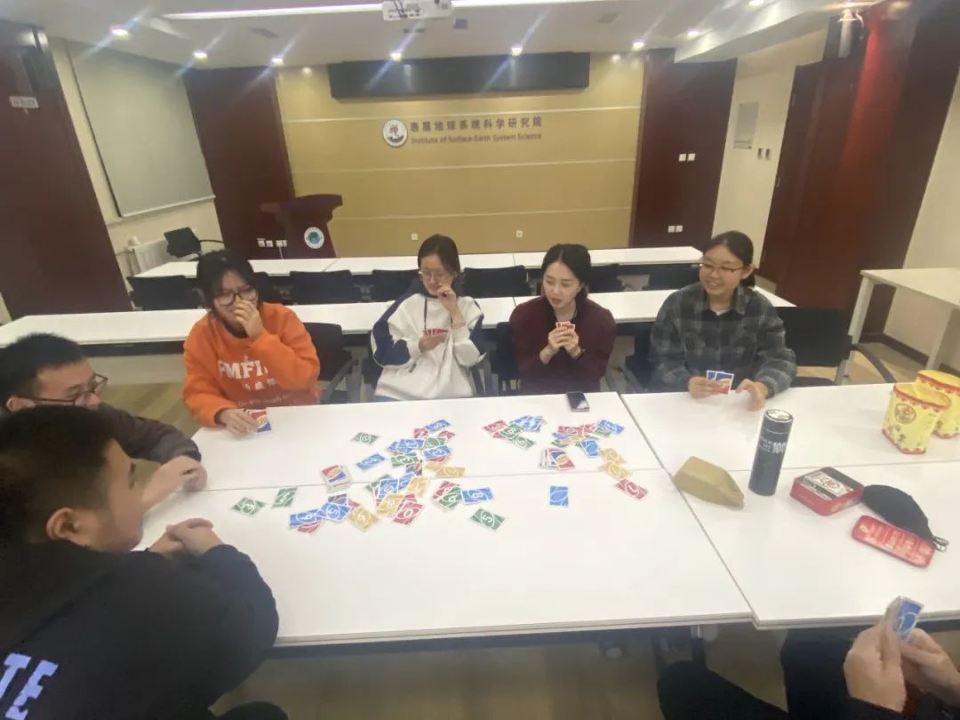 令人期待的团建月如期而至,我们选择在校内以“畅聊科研-共进晚餐”的形式开展了团建活动。大家准备了丰盛的晚餐、饮品以及饭后水果,在交流会开始,王老师首先对过去一年大家的工作给进行了总结,给予了肯定,也提出了不足,同时对大家未来的工作进行规划与展望。接着,同学们对各自的工作与来年计划也进行了总结和归纳。在一片温馨与祥和的氛围中,大家就科学问题互相探讨,同时也对各自生活送出祝福并致以美好期许。为缓解大家疫情期间的复杂心情,在交流会后期,我们还组织了打牌、下棋等娱乐活动,大家开动脑筋,活跃思维,一起度过了一晚愉快的时光。