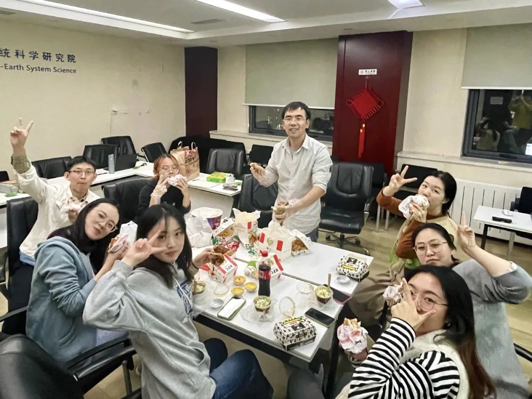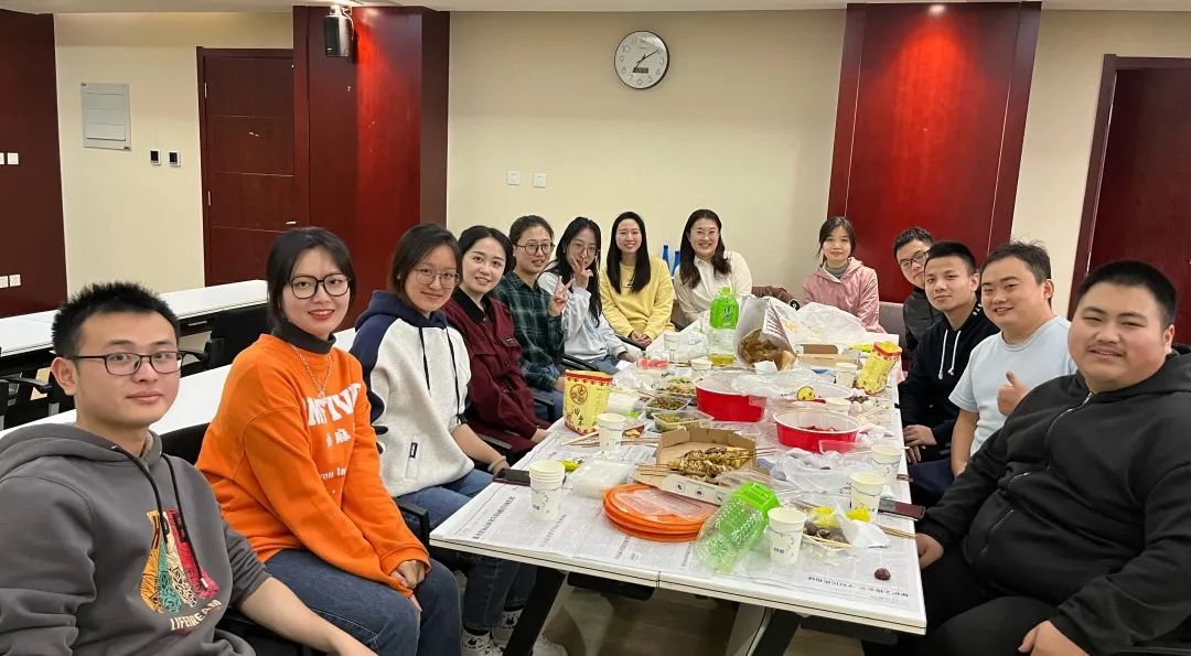 趁着老师有教学任务进校,我们进行了“疯狂星期四”聚餐活动,品尝了期待已久的新品汉堡和小零食,饱餐一顿感觉更有干劲了。虽然天气变冷了,但大家的胃和心都是火热的。当课题组里的我们交织在一起,未必是组会与科研。在温暖的团建中,志同道合的我们畅聊着现在与未来,一起在奔向理想的路上,留下属于自己的色彩。