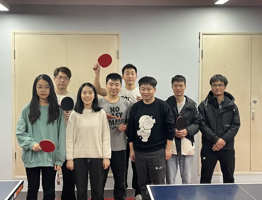 运动让冬天更加温暖,一场乒乓球比赛让我们感受冬天的火热,场上的运动人打得热火朝天,场下的“啦啦队”也热情高涨,精彩的对垒一场接一场。我们在这欢乐的氛围中拉近了彼此的距离,发现大家深藏不漏的特长;在大家的教导与鼓励下,乒乓球小白也可以打上几个回合。生活需要烟火,桌上有肉,杯中有酒。运动结束后,在团建聚餐活动中,大家有说有笑,畅所欲言,对过去不后悔,对现在有信心,对未来满是希望。今后踏踏实实走好每一步,努力科研,未来可期,付出总有回报。
