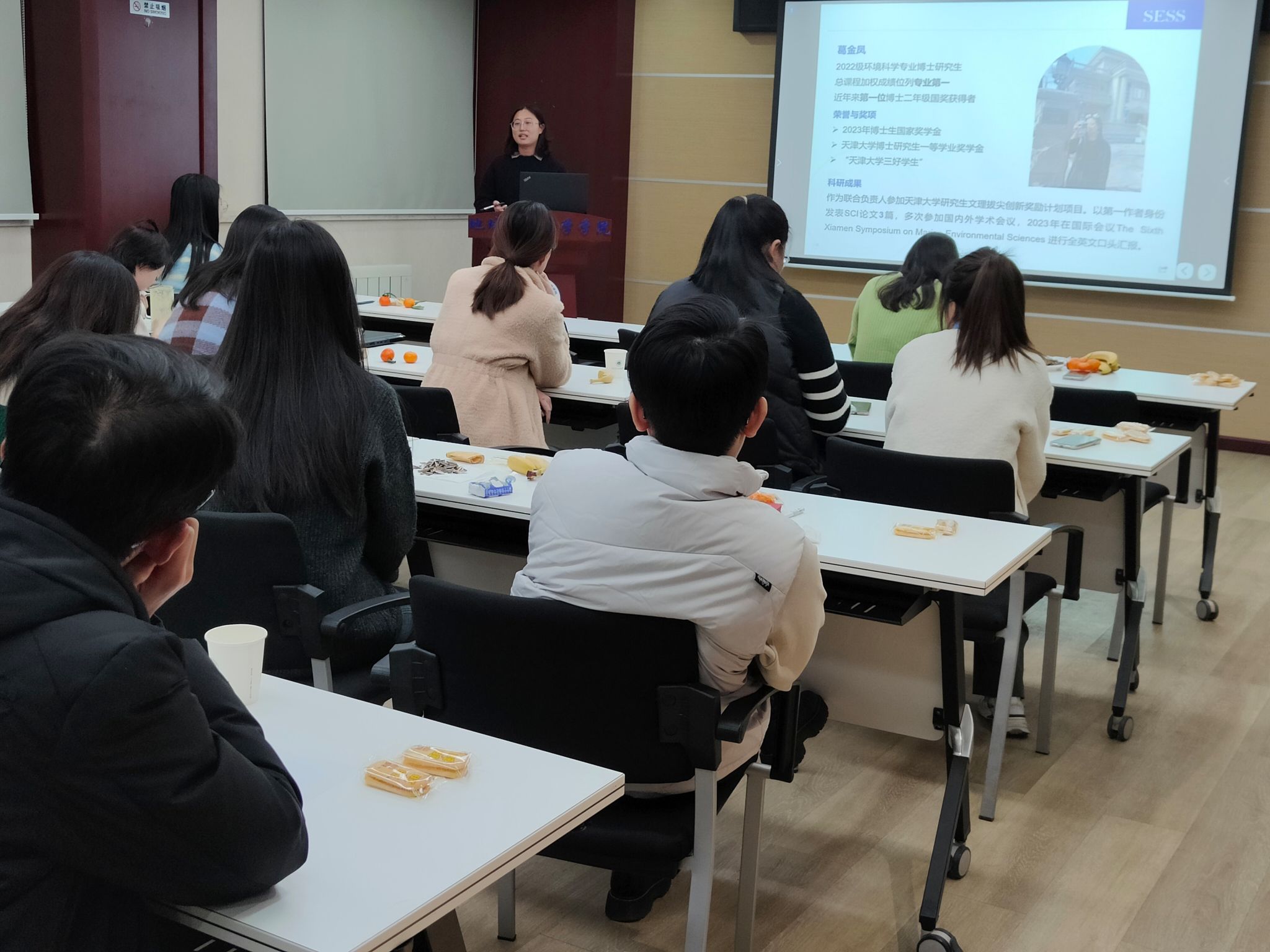 2020级博士生李婉珠首先分享了自己从本科生物工程专业到硕士地质学专业再到博士的环境科学专业的学习经历、如何在跨学科之间找寻自己的兴趣方向和在疫情期间如何克服重重困难完成采样。最后李婉珠针对大家提出的 ① 博士刚开学的时候如何规划自己博士四年的学习和生活;② 博士刚开学的时候如何确立的课题或者研究方向;③ 在发文章的过程中遇到什么困难,如何克服;④ 有何推荐的科研软件;⑤ 提前毕业需要什么条件,为什么想提前毕业;⑥ 如何利用时间快速发文章等问题替大家解答疑惑。