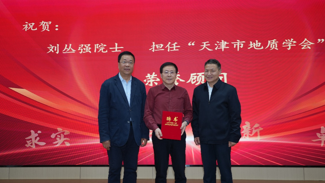 科普讲座前,段焕春局长代表天津市地质学会向刘丛强院士颁发“天津地质学会荣誉顾问”聘书,感谢其长期以来在推动天津地学学术交流、人才培养和学科建设等方面所作出的突出贡献。