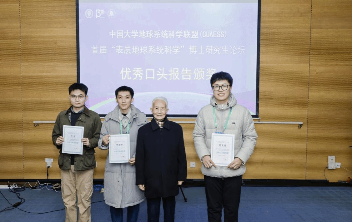 分论坛上,35位经过组委会遴选的优秀博士生围绕“地球系统过程”“地球系统模拟”“地球系统治理”三个核心方向进行了精彩的口头报告,集中展现了我国地球系统科学领域青年学者扎实的科研功底、敏锐的问题意识与开阔的国际视野。每个分论坛均配备了由相关领域教授组成的点评专家组,现场互动热烈,学术氛围浓厚。最终,9个报告获评优秀口头报告,符淙斌院士、刘丛强院士、陈德亮院士为获奖同学颁奖。