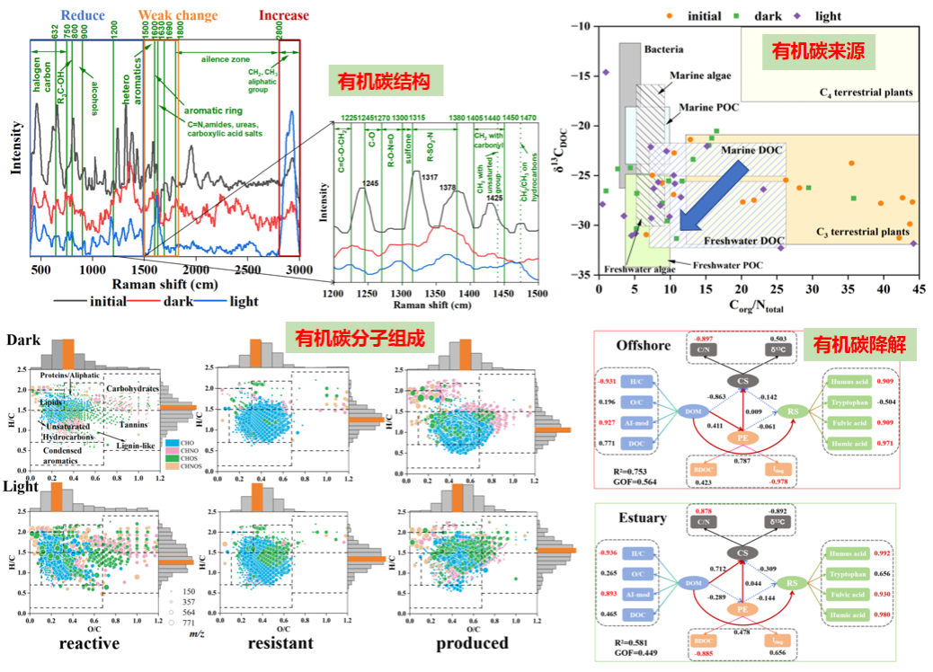 图2. 激发效应影响下有机碳的结构、来源、分子组分和降解规律