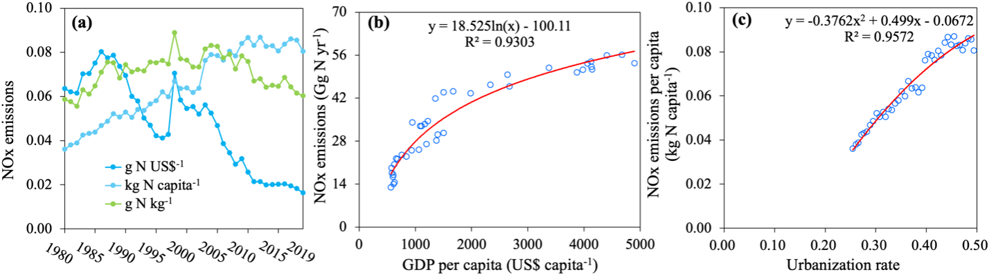 图2. 社会经济活动与农田施肥NOx排放的关系