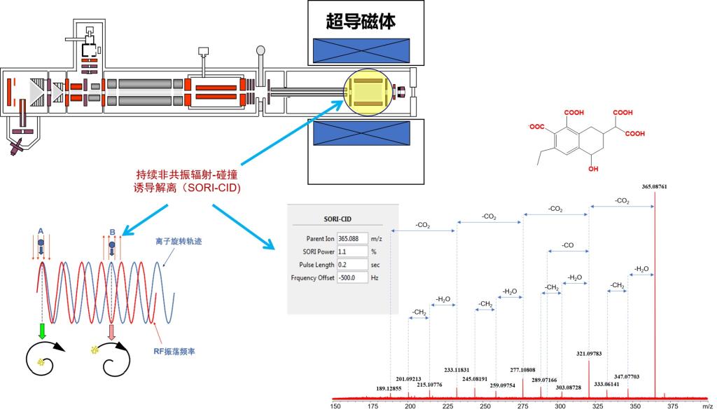 摘 要:FT-ICR MS超高分辨能力和质量精确度,很容易实现几十甚至上百万的分辨率,以及亚ppm级的质量准确度,再结合SmartFormula技术可以提供最可靠的元素组成和分子式。同时,FT-ICR MS支持最多样化的裂解技术,其中SORI-CID是FT-ICR MS所特有的利用ICR检测池实现的碎裂模式。这项技术不仅可以在复杂体系中轻松得到目标化合物的结构信息,还可以将离子长时间的捕集在分析池内,是研究气相离子-分子反应以及相关动力学的研究成为可能。