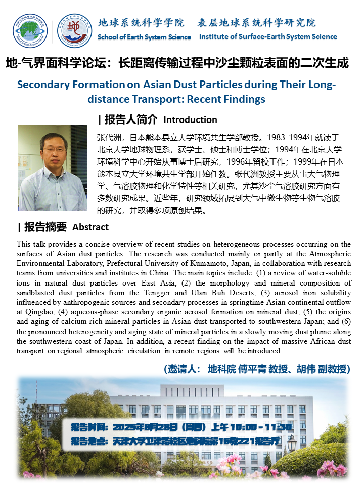 主讲嘉宾:张代洲,日本熊本县立大学环境共生学部教授。1983-1994年就读于北京大学地球物理系,获学士、硕士和博士学位;1994年在北京大学环境科学中心开始从事博士后研究,1996年留校工作;1999年在日本熊本县立大学环境共生学部开始任教。张代洲教授主要从事大气物理学、气溶胶物理和化学特性等相关研究,尤其沙尘气溶胶研究方面有多项研究成果。近些年,研究领域拓展到大气中微生物等生物气溶胶的研究,并取得多项原创成果。