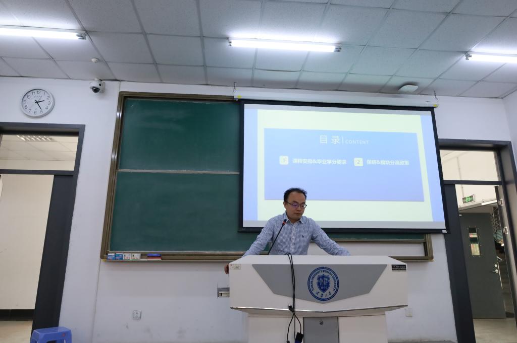 地理科学系主任刘羿,详细介绍了本科生通识课、专业课课程设置及毕业学分要求、保研政策、不同方向专业模块的分流政策及课程设置等,并与同学们就专业模块课的学分设置及保研政策等进行了说明。