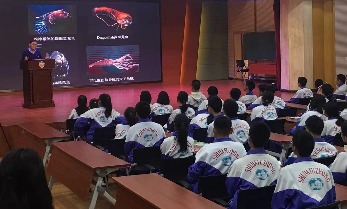 孙若愚作题为《探秘深海》的科普报告,从“深海是地球上最后未被人类全面系统感知和利用的地理空间,充满许多科学之谜”引入,用图片、视频和生动的讲解,讲述深海极端的生态环境为我们认识地球早期生命演化以及探索未来宜居星球提供了绝佳的研究窗口,深海也蕴含着非常宝贵的矿产资源和能源,有望成为未来开发的热点,引导同学们走向深海,领航未来。傅平青作题为《小颗粒,大问题》的科普报告,讲述大气气溶胶的前世今生,展示颗粒物的微观形貌和全球尺度的地球化学循环过程,带领大家从“大气”的研究认识沙尘暴、灰霾污染、海洋生态系统营养供给等可能威胁人类生存和地球发展的大问题。报告内容丰富、详尽生动,现场气氛活跃,反响热烈。