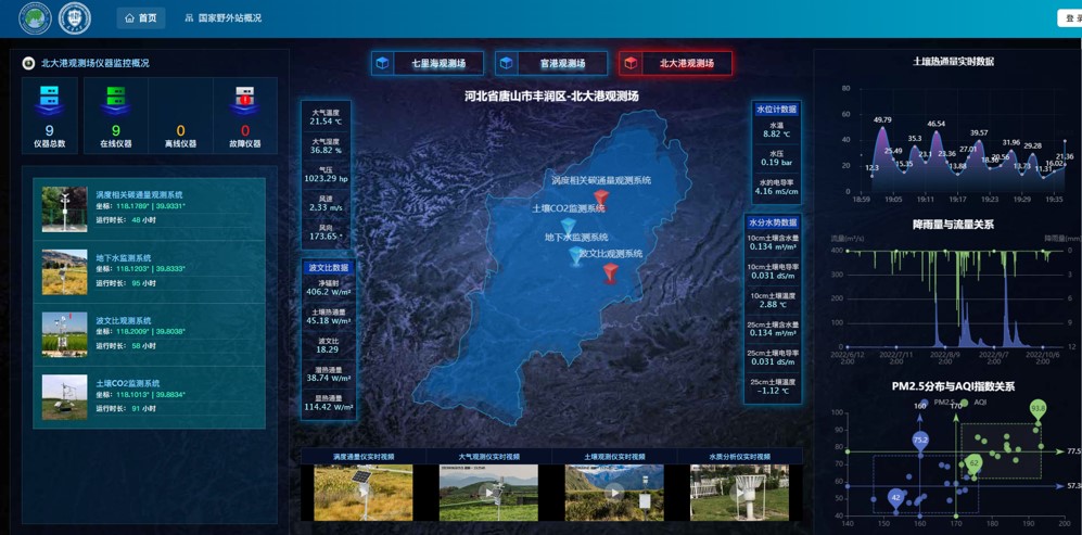 环渤海国家站按照国家野外站观测标准规范以及相关国家和行业标准,对数据按照水、土、气、生要素进行分类管理,按国家野外站规范建设环渤海国家站仪器数据管理平台,包括监测数据实时传输系统,监测数据管理分析系统和监测数据地图可视化系统等,用于台站仪器和数据管理。参照国际地球关键带观测指标,制定了适用于滨海沉积型地球关键带观测指标体系,已在北大港湿地地球关键带观测基地、七里海湿地地球关键带观测基地、官港地球关键带观测试验场等,布设涡度协方差观测系统、标准气象场、浮台监测系统、波文比能量观测系统、土壤水分水势观测系统、地下水监测系统等,用于开展相关指标的监测和分析。